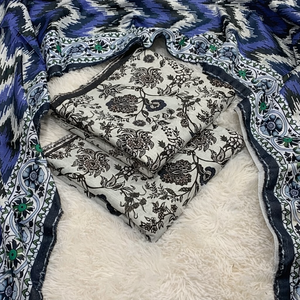 - Set: 3-Piece Unstitched Suit (Shirt, Trouser, Dupatta).