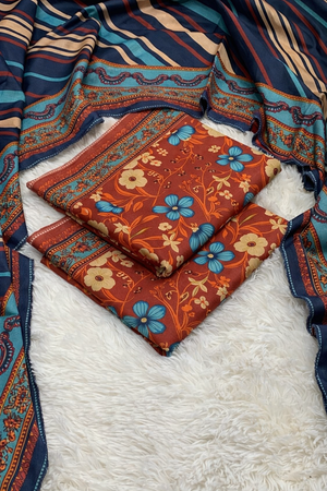 - Set: 3-Piece Unstitched Suit (Shirt, Trouser, Dupatta).