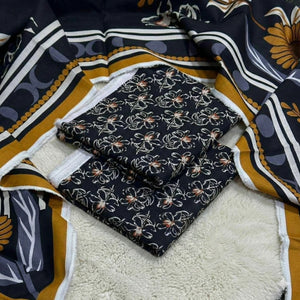 ZZ. Collection: Khaddar Black, Grey & Ochre Printed 3-Piece Suit (Winter Collection) (Bin Saeed) (K1008)