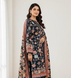 ZZ. Collection: Khaddar Black & Tea Pink Floral Printed 3-Piece Suit (Winter Collection) (Bin Saeed) (K1005)