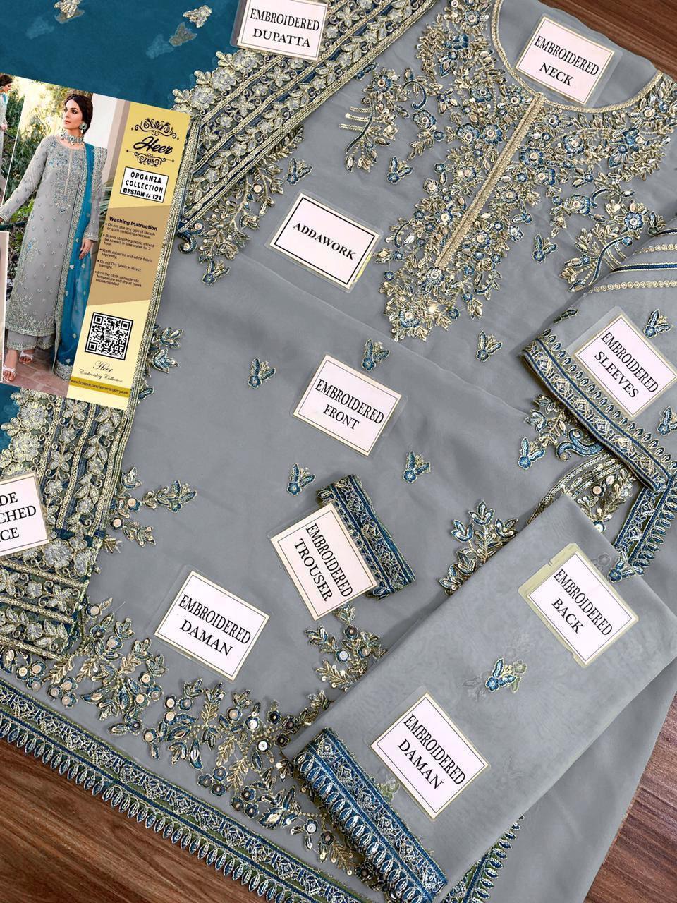 Fabric: Premium Organza (Shirt & Dupatta) & Soft Malai (Trouser/Inner).